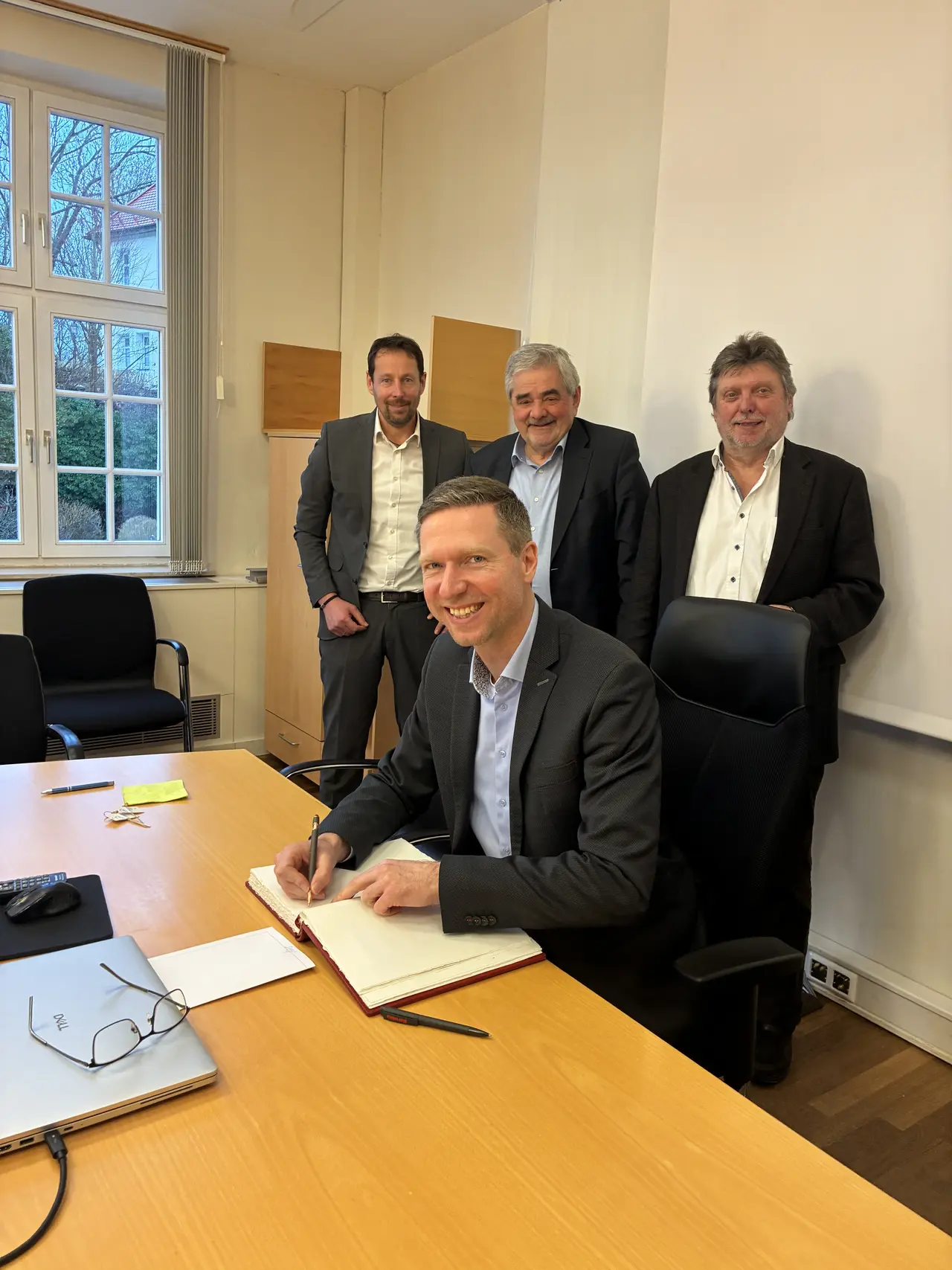 Im Sitzungssaal des Rathauses wurde Landrat Wiedemann zunächst von Bürgermeister Hans Wittauer begrüßt. In seinem Vortrag stellte der Bürgermeister die aktuellen Themen der Marktgemeinde vor: Von infrastrukturellen Aufgaben über die Entwicklung lokaler Gewerbeflächen bis hin zu den Bemühungen um gesellschaftlichen Zusammenhalt und städtebauliche Impulse.
