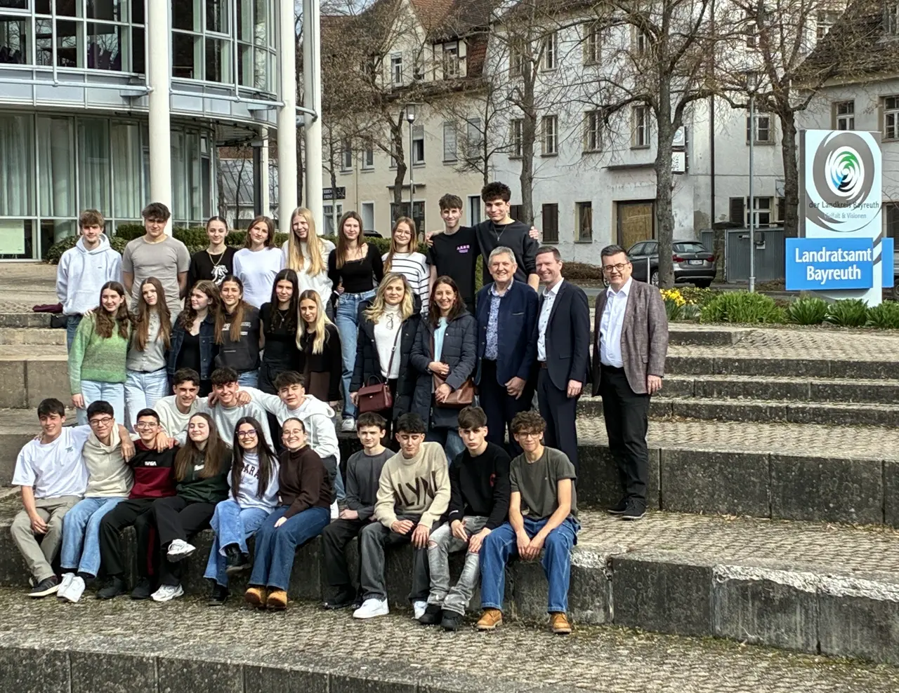 Am Montagnachmittag besuchte eine Gruppe von deutschen und italienischen Schülerinnen und Schülern gemeinsam mit ihren Lehrkräften das Landratsamt Bayreuth. Die Jugendlichen aus Assisi verbringen eine Woche an der Gesamtschule Hollfeld und wohnen während ihres Aufenthalts bei den Familien ihrer deutschen Austauschpartner.