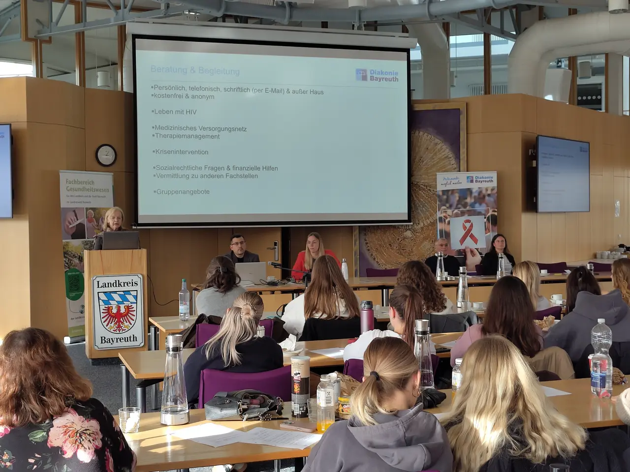 Am 13. November fand im Sitzungssaal des Landratsamts Bayreuth der Fachtag „Pflege und HIV – Von der Theorie zur Praxis“ statt. Dazu eingeladen hatten die Aidsberatung Oberfranken der Diakonie Bayreuth und der Fachbereich Gesundheitswesen des Landratsamtes Bayreuth als Organisatoren der Veranstaltung.