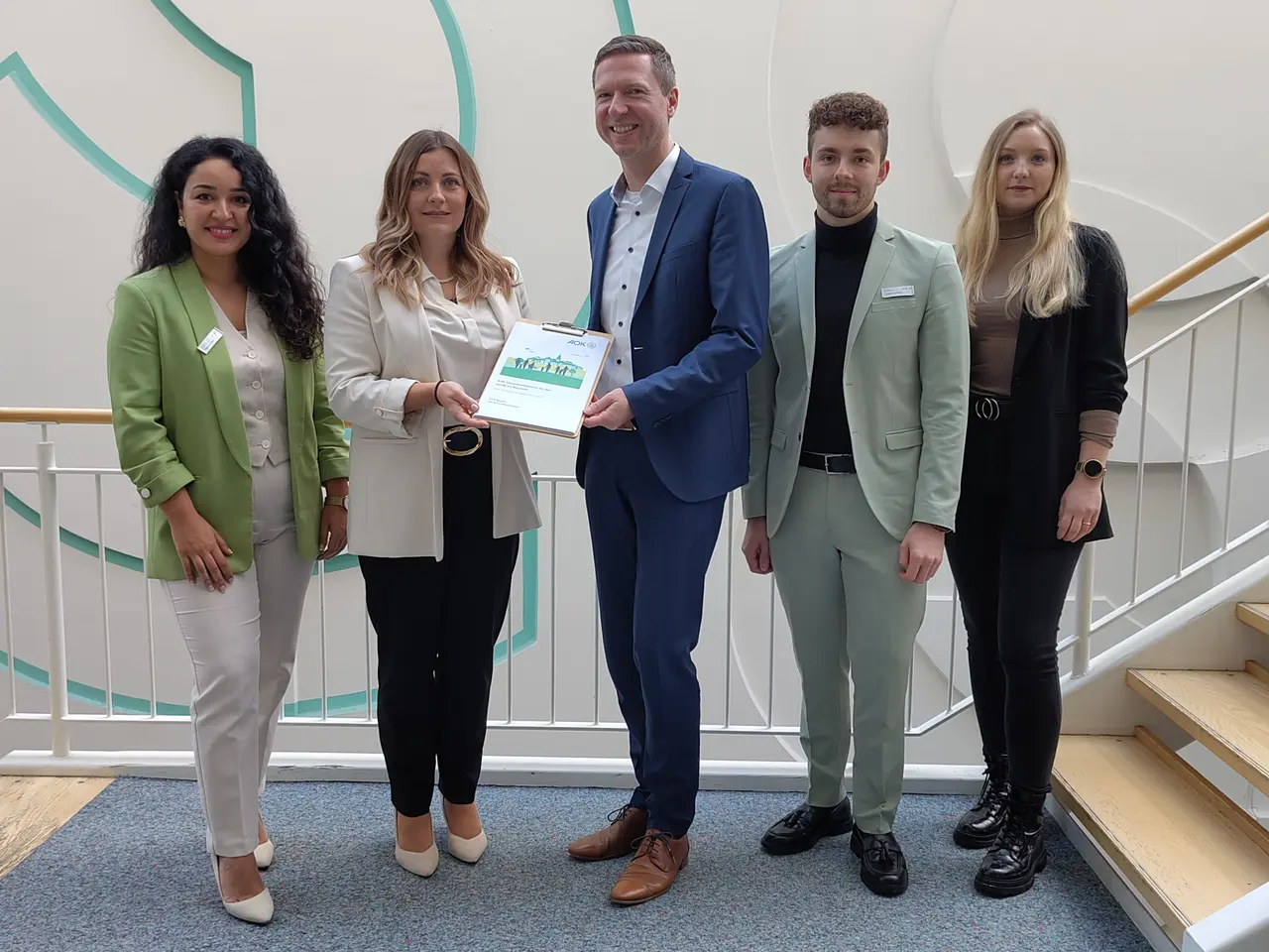 Nazmiye Önal (AOK/Teamleitung Veranstaltungsmanagement), Melanie Heinlein-Lodes (Direktorin AOK Bayreuth-Kulmbach), Landrat Florian Wiedemann, Jonas Hofmann (AOK/Direktionsassistenz), Katrin Kürzdörfer (Gesundheitsregion PLUS Bayreuth).
