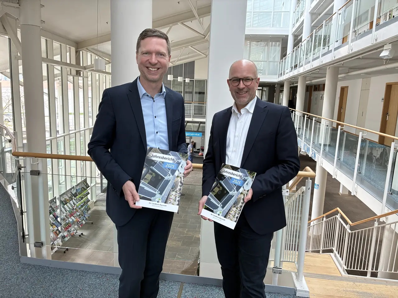 JB25_3: Landrat Florian Wiedemann (links) und Leitender Verwaltungsdirektor Daniel Frieß präsentieren den Jahresbericht 2025.