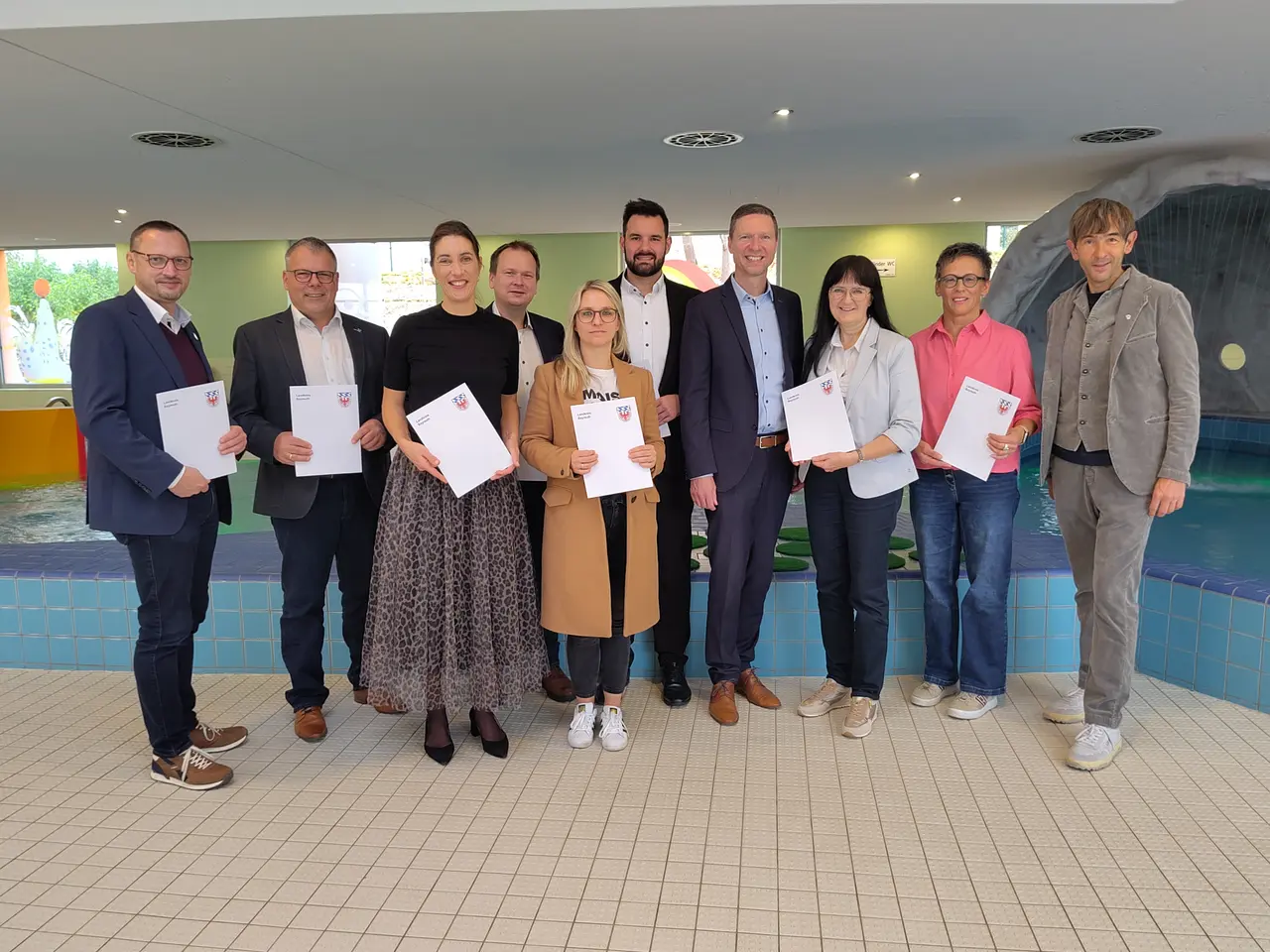 Am 24. Oktober überreichte Landrat Florian Wiedemann im CabrioSol in Pegnitz die diesjährigen Förderbescheide an die Vertreter der Träger von Schwimmbädern und dankte allen für ihr Engagement bei der Förderung der Schwimmfähigkeit.