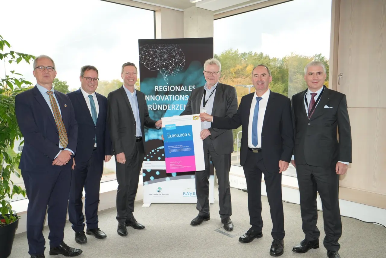 Bayerns Wirtschaftsminister Hubert Aiwanger hat am Mittwoch, 22. Oktober, in Bayreuth die Förderurkunde in Höhe von zehn Millionen Euro für das Regionale Gründer- und Innovationszentrum (RIZ) an Oberbürgermeister Thomas Ebersberger und Landrat Florian Wiedemann übergeben. „Wir freuen uns, mit dem RIZ die Innovationskraft der Region Bayreuth zu fördern“, betonte Aiwanger.